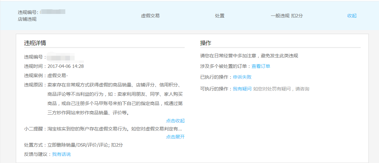 PS: 若找不到申诉入口,请确认申诉是否已经超时(商品处罚的5天内可进行申诉),且申诉只有一次机会,若已经申诉过了,则无法再次申诉。